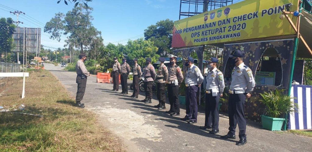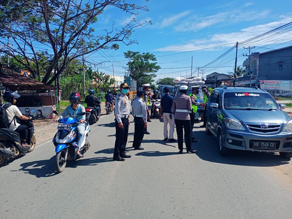 2. Kegiatan pelaksanaan check point dalam rangka penyekatan dan larangan mudik untuk pencegahan penyebaran COVID-19 bersibergis dengan polres singkawang pada lokasi pasir panjang dan simpang vit.