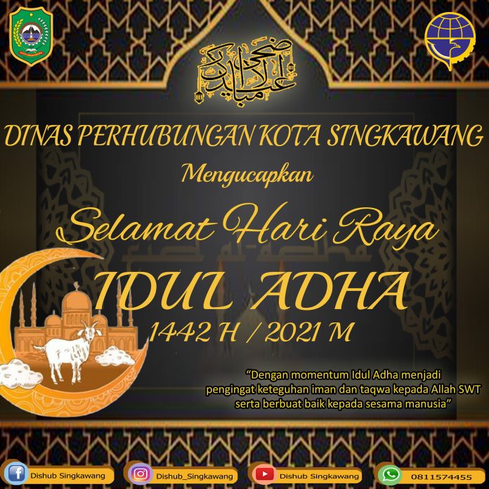 Dinas Perhubungan Kota Singkawang mengucapkan Selamat Hari Raya Idul Adha 1442 H. Idul Adha adalah saat untuk merayakan semangat dalam berkurban, harapan pada ampunan, dan keteguhan dalam beriman. Semoga Allah SWT memberi kita kebahagian, kedamaian, dan kemakmuran. Semoga Rahmat Allah SWT tidak pernah meninggalkan kita. Selamat Hari Raya Idul Adha, mohon maaf lahir dan batin ![]()