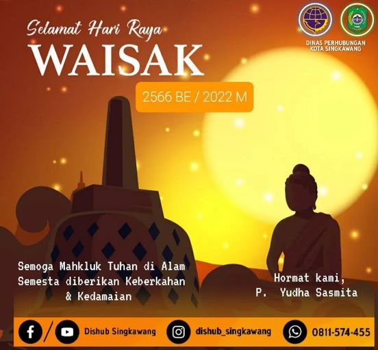 Dinas Perhubungan Kota Singkawang mengucapkan Selamat memperingati Hari Raya Waisak 2566 BE / 2022 M