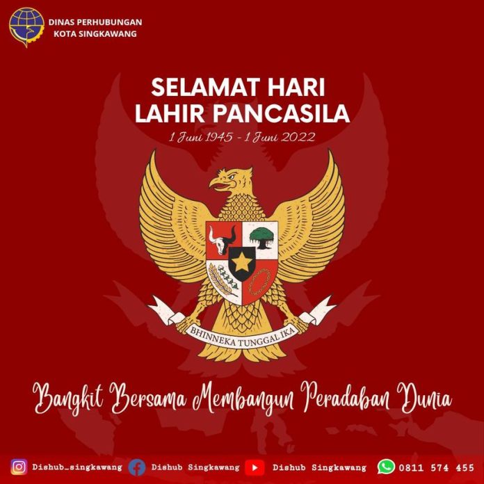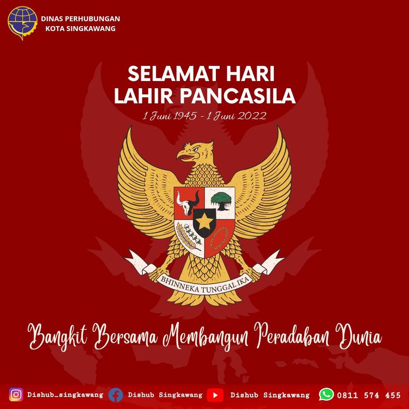 BeritaPhoto Dinas Perhubungan Singkawang Mengucapkan Selamat Hari Lahir Pancasila, 1 Juni 2022 By Dinas Perhubungan - 1 June 2022 0 58 Facebook Twitter Pinterest WhatsApp Selamat Hari Lahir Pancasila, 1 Juni 2022. Melalui Peringatan hari lahirnya Pancasila, ini sebagai momentum untuk mengembalikan semangat jiwa kebangsaan dan kenegaraan melalui Dasar Negara Indonesia yaitu Pancasila.