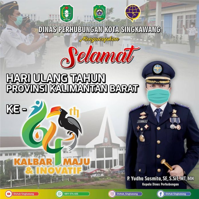 Dinas Perhubungan Kota Singkawang mengucapkan “DIRGAHAYU PEMERINTAH PROVINSI KALIMANTAN BARAT KE-64 Tahun 2021″KALBAR MAJU DAN INOVATIF! #dishubsingkawang#hutkalbar