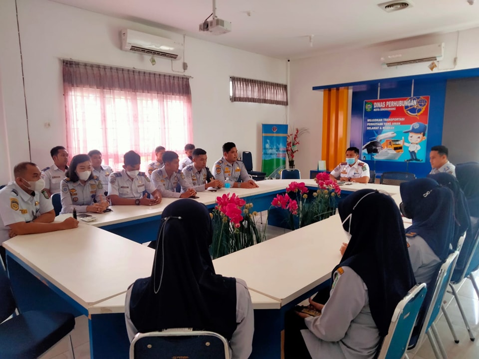 Kepala Dinas Kota Singkawang memberikan pembinaan, pengarahan dan motivasi serta evaluasi aktivitas kerja yang telah dilakukan oleh para Alumni Ikatan Ahli Lalu Lintas Sekolah Tinggi Transportssi Darat/ASN