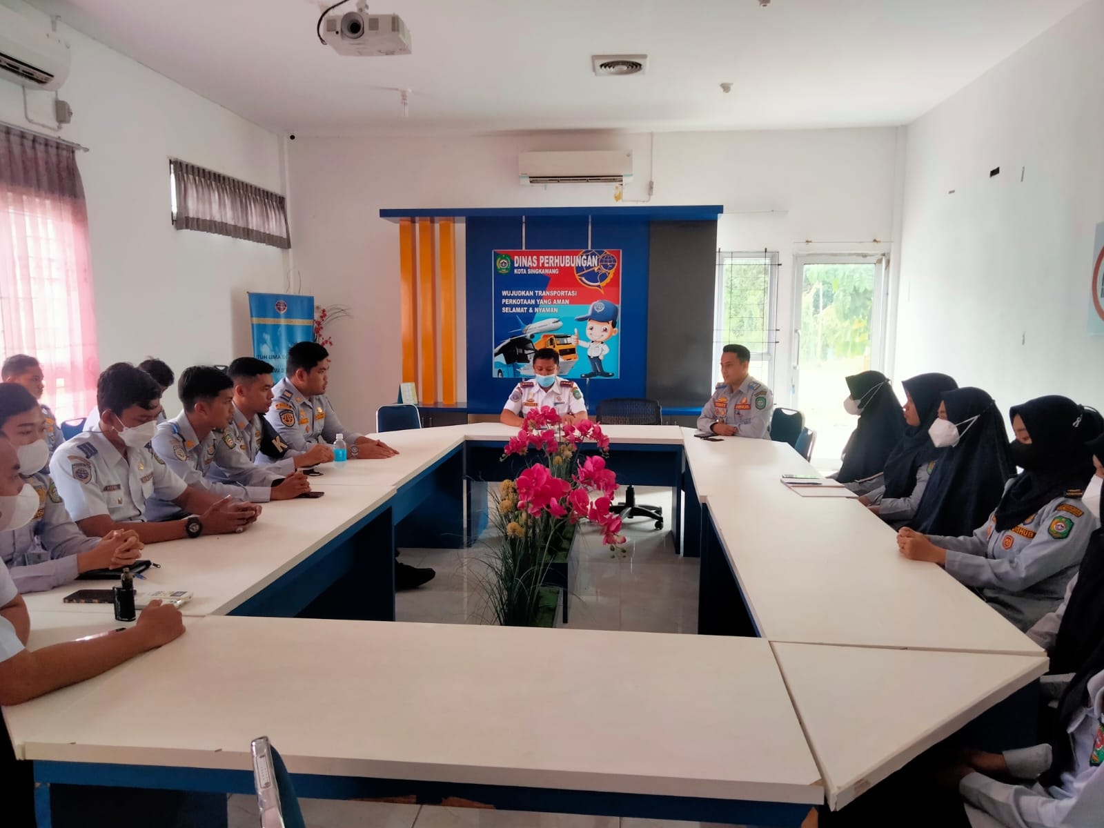 Kepala Dinas Kota Singkawang memberikan pembinaan, pengarahan dan motivasi serta evaluasi aktivitas kerja yang telah dilakukan oleh para Alumni Ikatan Ahli Lalu Lintas Sekolah Tinggi Transportssi Darat/ASN