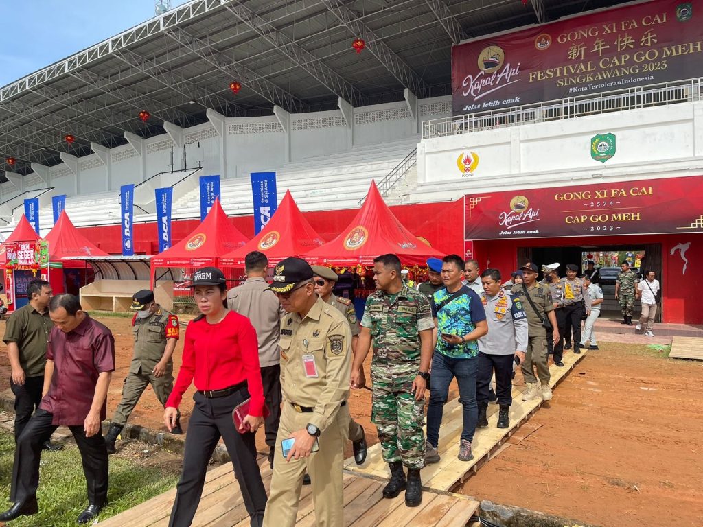 Kepala Dinas Perhubungan Kota Singkawang melakukan peninjauan Lapangan bersama Pj Wali Kota, FORKOMINDA dan Ketua Panitia (Wali Kota Singkawang, periode 2017 – 2022, Ibu Tjhai Chui Mie) dan anggota panitia untuk persiapan Rencana Perayaan Tahun Baru Imlek 2574 dan Festival Cap Go Meh 2023 Kota Singkawang di Stadiun Kridasana