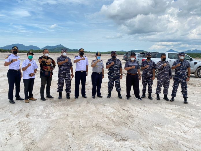 Mendampingi Danlantamal XII Pontianak, Laksma TNI Suharto, SH, M.Si beserta jajaran dan Wakil Ketua Komisi V DPR RI, Bapak Syarif Abdullah Alkadrie, SH, MH didampingi Wakil Ketua DPRD Kota Singkawang, Bapak Sumberanto Tjitra, SH, MH, Camat Singkawang Selatan, Lurah Sagatani danTokoh Masyarakat Pangmilang di lokasi Pembangunan Bandar Udara Singkawang.