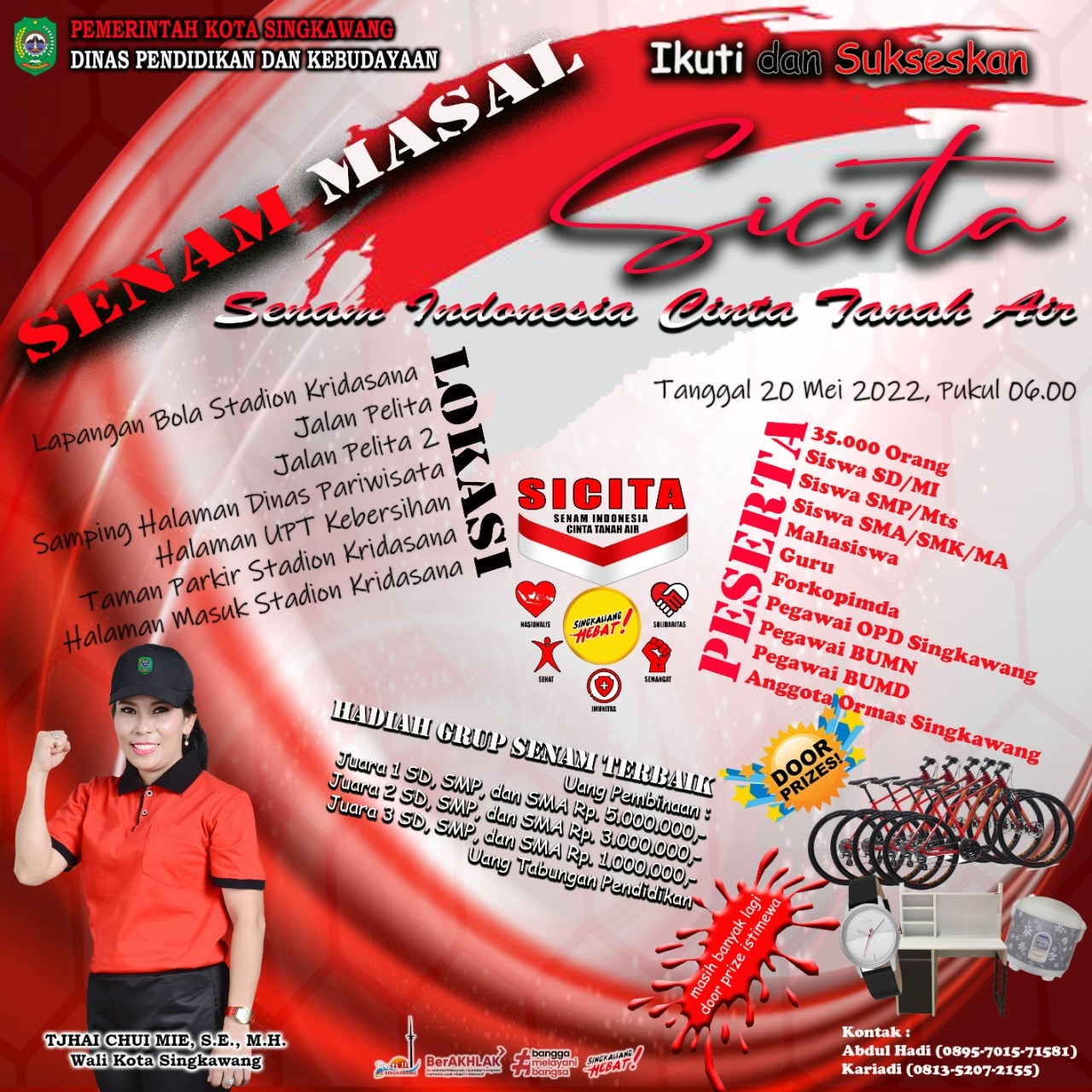 Kepala Dinas Perhubungan Kota Singkawang Mengikuti Kegiatan pengecekan lokasi Stadiun Kridasana oleh Wali Kota Singkawang dalam rangka pelaksanaan Senam SICITA ( Senam Cinta Tanah Air) yg melibatkan ribuan massa pada hari Jumat Pagi, 20 Mei 2022.