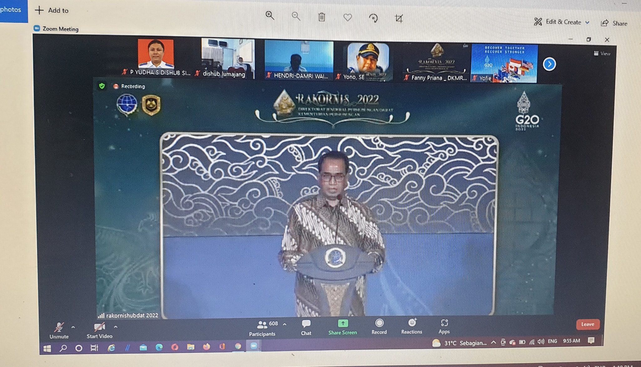 Kepala Dinas Perhubungan Singkawang Mengikuti RAKORNIS 2022 Direktorat Jenderal Perhubungan Darat Kementerian Perhubungan by zoom meeting dengan tema Sinergi Transportasi Darat Menuju Indonesia Tangguh Indonesia Tumbuh.