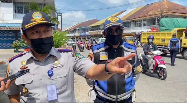Kepala Dishub Singkawang memonitor rangkaian kegiatan Penegakan Hukum Peraturan Wali Kota Singkawang tentang Penetapan Pengoperasian Kendaraan Bermotor Dalam Wilayah Kota Singkawang