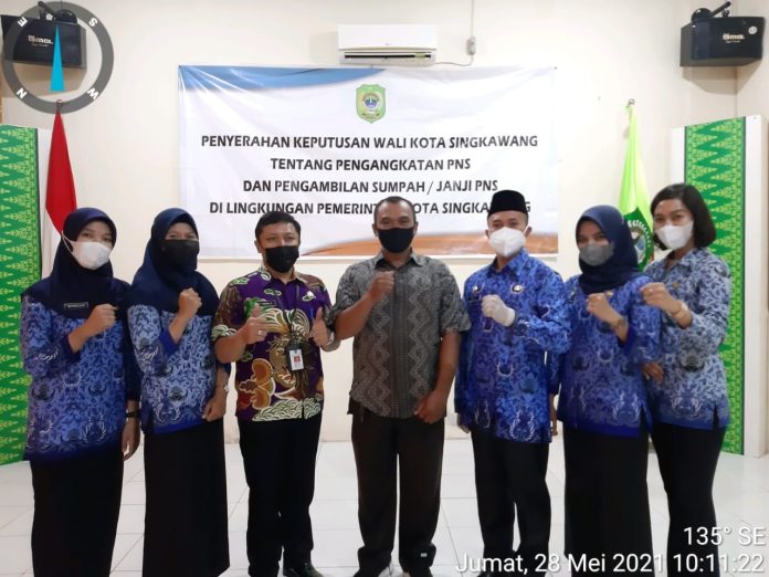 Jumat, 28 Mei 2021 Kepala Dishub Singkawang menghadiri Kegiatan Pengambilan Sumpah/Janji Pegawai Negeri Sipil (PNS) dan Penyerahan Keputusan Walikota tentang Pengangkatan PNS Dinas Perhubungan Pemerintah Kota Singkawang oleh Kepala BKPSDM mewakili Wali Kota Singkawang di Kantor BKPSDM Kota Singkawang. PNS yang dilantik adalah 5 orang alumni lulusan Sekolah Tinggi Transportasi Darat ( STTD) Tahun 2019 melalui Pola Pembibitan Pemkot Singkawang.Bravo. Selamat bekerja ASN muda Dishub dengan berlandaskan 8 etos kerja dan 5 Citra Manusia Perhubungan.