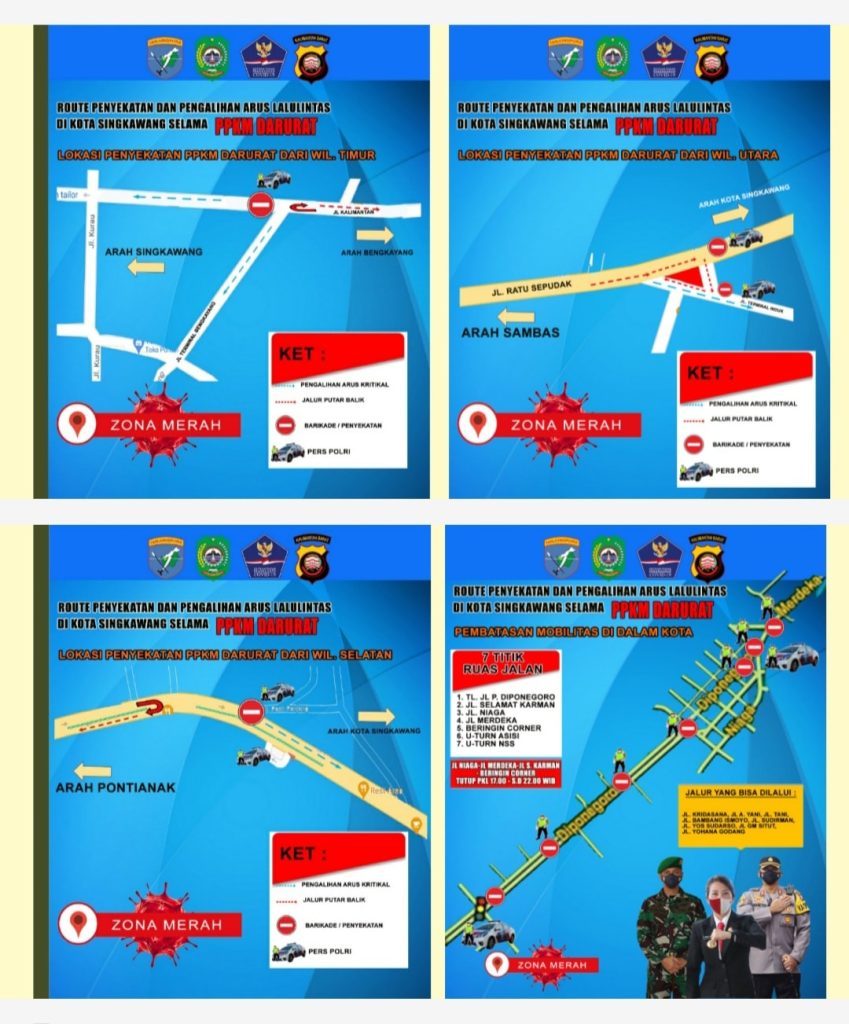 Senin, 12 Juli 2021 Kepala Dishub Singkawang menghadiri Rapat Koordinasi Terbatas serta mempresentasikan rencana Konsep Penyekatan Jalan dalam rangka Pemberlakuan Pembatasan Kegiatan Masyarakat (PPKM) Darurat di Kota Singkawang dari tanggal 13 – 20 Juli 2021 sesuai dengan Keputusan Wali Kota Singkawang Nomor : 400/251/SETDA.KESRA-B Tahun 2021tentang PPKM Darurat COVID-19 dan Optimalisasi Pos Komando Penanganan COVID-19 di Tingkat Kelurahan untuk Pengendalian Penyebaran.Kegiatan Rapat dilaksanakan di Ruang Basement Kantor Wali Kota. Acara Rapat dipandu oleh Sekretaris Daerah dan dipimpin langsung oleh Wali Kota didampingi Wakil Wali Kota dihadiri oleh Ketua DPRD, Kapolres, Dandim 1202, Kadis Perhubungan, Kasat Pol PP, Diskominfo, Kasat Pelopor Brimob, Kasat Lantas, Kalak BPBD dan Bagian Kesra Setda Kota Singkawang. Turut hadir Kabid Lalu Lintas dan Kasi Manajemen Lalu Lintas mendampingi.Pada Kegiatan PPKM Darurat ini dijalankan secara sinergis dan kolaborasi antara institusi TNI, POLRI dan Pemerintah Kota Singkawang. Dalam hal ini terdapat 3 Pos Penyekatan dan 3 Pos Pengamanan yang akan beroperasi dan 4 ruas penyekatan yaitu Akses Masuk Singkawang Timur, Singkawang Utara, Singkawang Selatan dan beberapa ruas jalan dalam Kota Singkawang.Mohon dukungan dari masyarakat Kora Singkawang dalam rangka menghilangkan status ZONA MERAH (RED ZONE) dan selanjutnya diharapkan seluruh aktivitas dapat berjalan normal kembali di Kota Singkawang