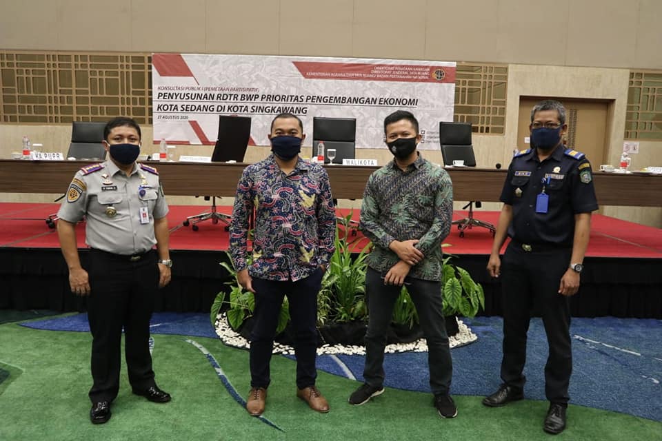 Kamis, 27 Agustus 2020. Konsultasi Publik dan Pemetaan Partisipatif Penyusunan RDTR Bagian Wilayah Perencanaan (BWP) Prioritas Pengembangan Ekonomi Kota Sedang di Kota Singkawang dengan delineasi wilayah perencanaan di BWP- C (Kelurahan Pangmilang, Kelurahan Sijangkung, dan Kelurahan Sedau) Kegiatan dibuka oleh Walikota Singkawang Ibu Tjai Chui Mie, SE, MH dan Arahan serta pengantar dari Direktur Penataan Kawasan Ditjen Tata Ruang Kementerian ATR/ BPN.Kegiatan dihadiri oleh Kepala OPD, Instansi vertikal, BUMN/ BUMD serta pelaku Usaha, di Kota Singkawang juga Lurah dan LPM/ stakeholder terkait di area Wilayah Perencanaan. Kegiatan bertujuan menyaring masukan masukan dari pemangku kepentingan dalam proses perencanaan.