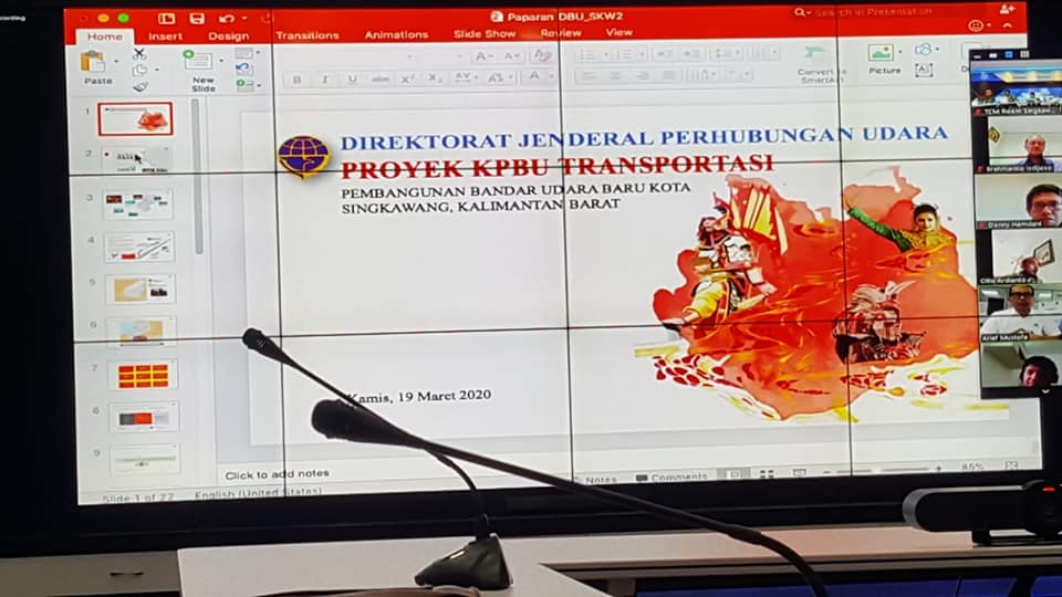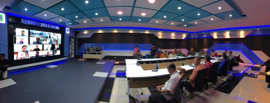 Pukul 13.00 WIB Kegiatan Video Conference ( Vicon) antara Walikota Singkawang Ibu Tjai Chu Mie, SE, MH didampingi FORKOMINDA, Sekda dan OPD terkait dengan pihak Kemenkeu Bapak Bramatio Isduoso Direktur Pengelolaan Dukungan Pemerintah dan Pembiayaan Infrastuktur (PDPPI) Direktorat Jenderal Pengelolaan Pembiayaan dan Risiko Kemenkeu, Bapak Cecep Kurniawan Kasubdit KPBU dan Bapak Arief Kepala Seksi Kerja Sama dan Pengembangan Pengusaha Bandar Udara Direktorat Bandar Udara Ditjen Perhubungan Udara Kemenhub dan Bapak M. Wahid Sutopo Direktur Utama dan Bapak Donny Hamdani Deputi Direktur Keuangan PT. Penjamin Infrastruktur Indonesia ( Persero)/ PT. PII dalam rangka Percepatan Pembangunan Bandar Udara Baru Singkawang dengan Sistem Public Private Partnership ( Kerjasama Pemerintah dan Badan Usaha) di Telematic Management Control Room Pemkot Singkawang.