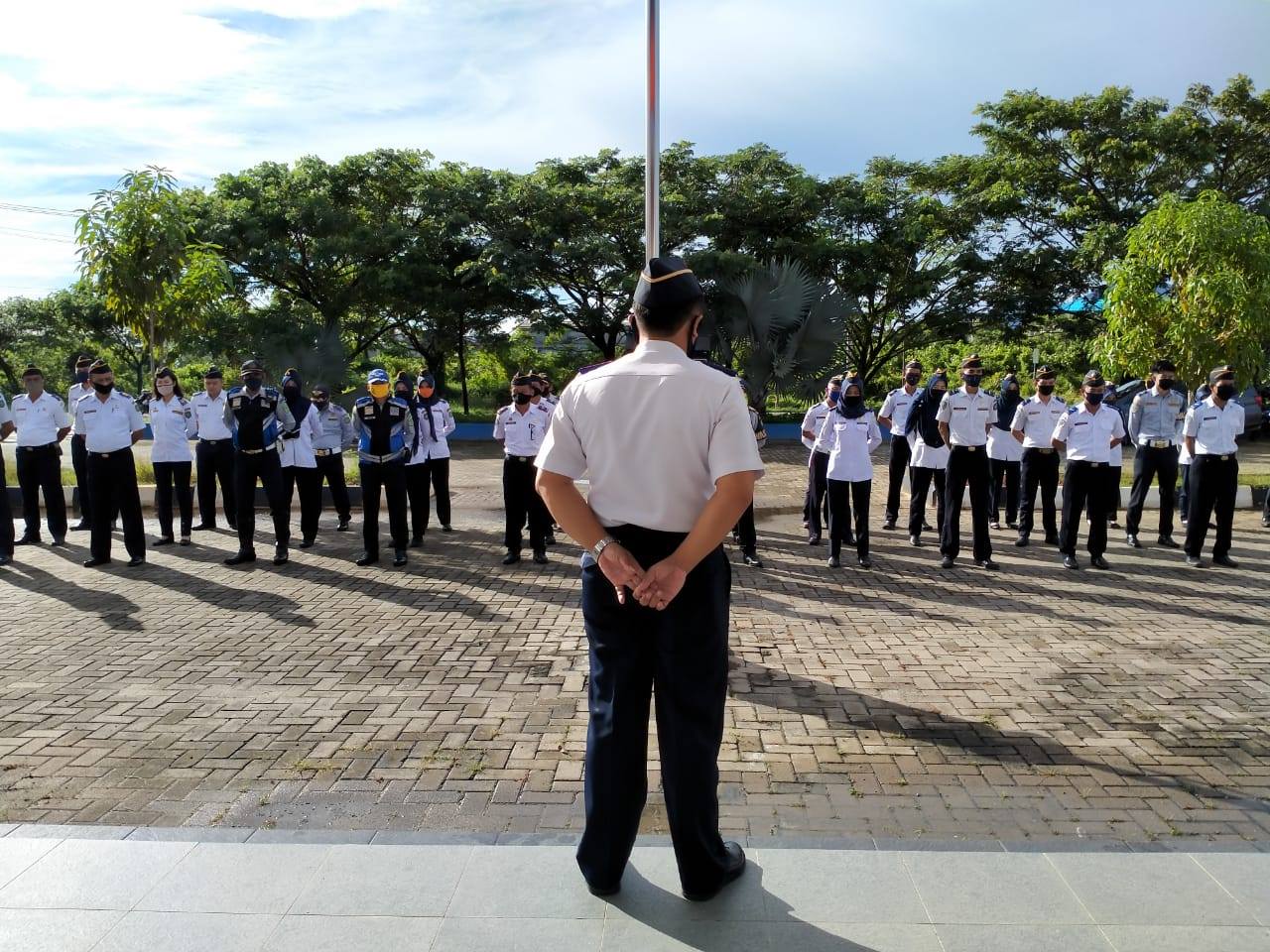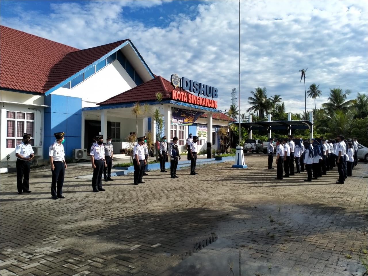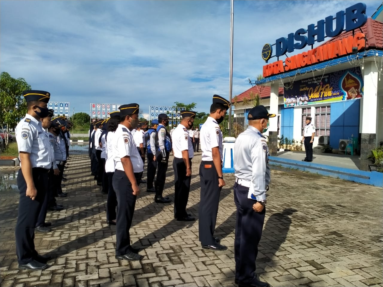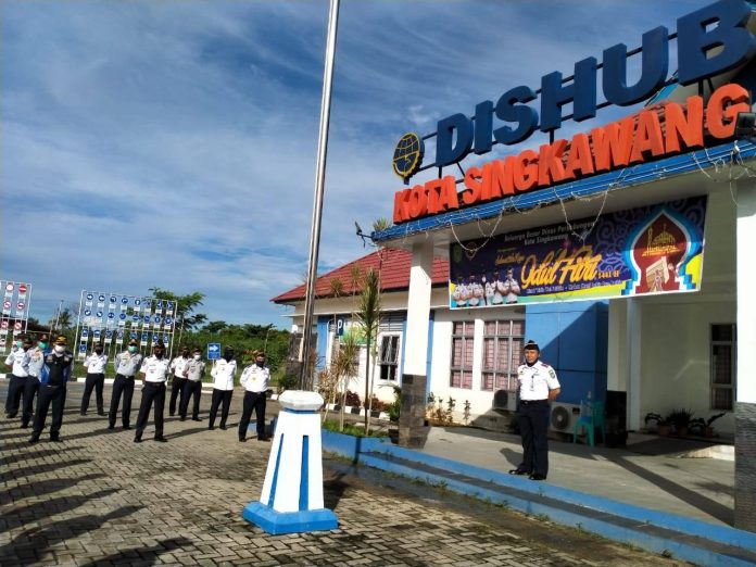 Selasa (2/6/2020), Kepala Dinas Perhubungan Kota Singkawang sebagai Pembina Apel pagi rutin yang kembali dilaksanakan sesuai keputusan pemberlakuan New Normal di Kota Singkawang dengan protokol kesehatan jaga jarak, menggunakan masker dan menjaga kebersihan diri.