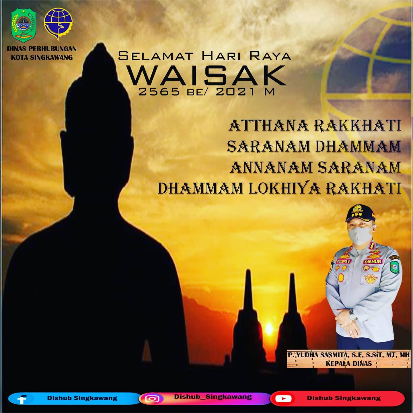 Kepala Dinas Perhubungan Kota Singkawang beserta jajaran mengucapkan: Selamat Hari Raya Waisak 25645 BE Tahun 2021Bagi Umat Budha yang merayakannya.Atthana Rakkhati, Saranam Dhammam, Annanam Saranam, Dhammam Lokhiya Rakhat. (Tiada Perlindungan yang Aman di Dunia ini, Kecuali Dhamma yang Dipraktekkan dengan Ketulusan Hati).