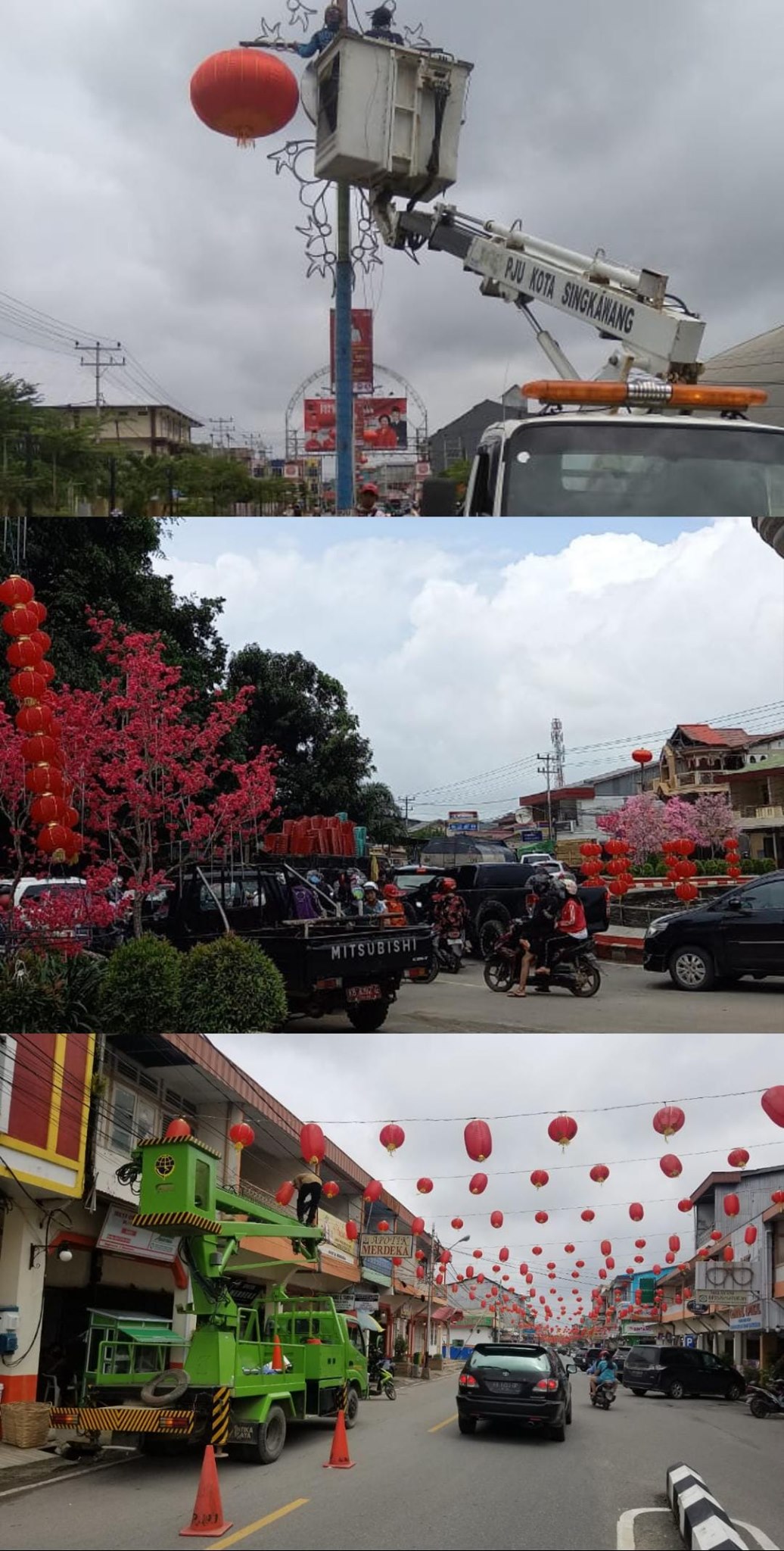 - Seksi PJU Dinas Perhubungan Kota Singkawang melakukan penyambungan supply ke lampu lampion dalam rangka memperingati Hari Raya Imlek Kota Singkawang