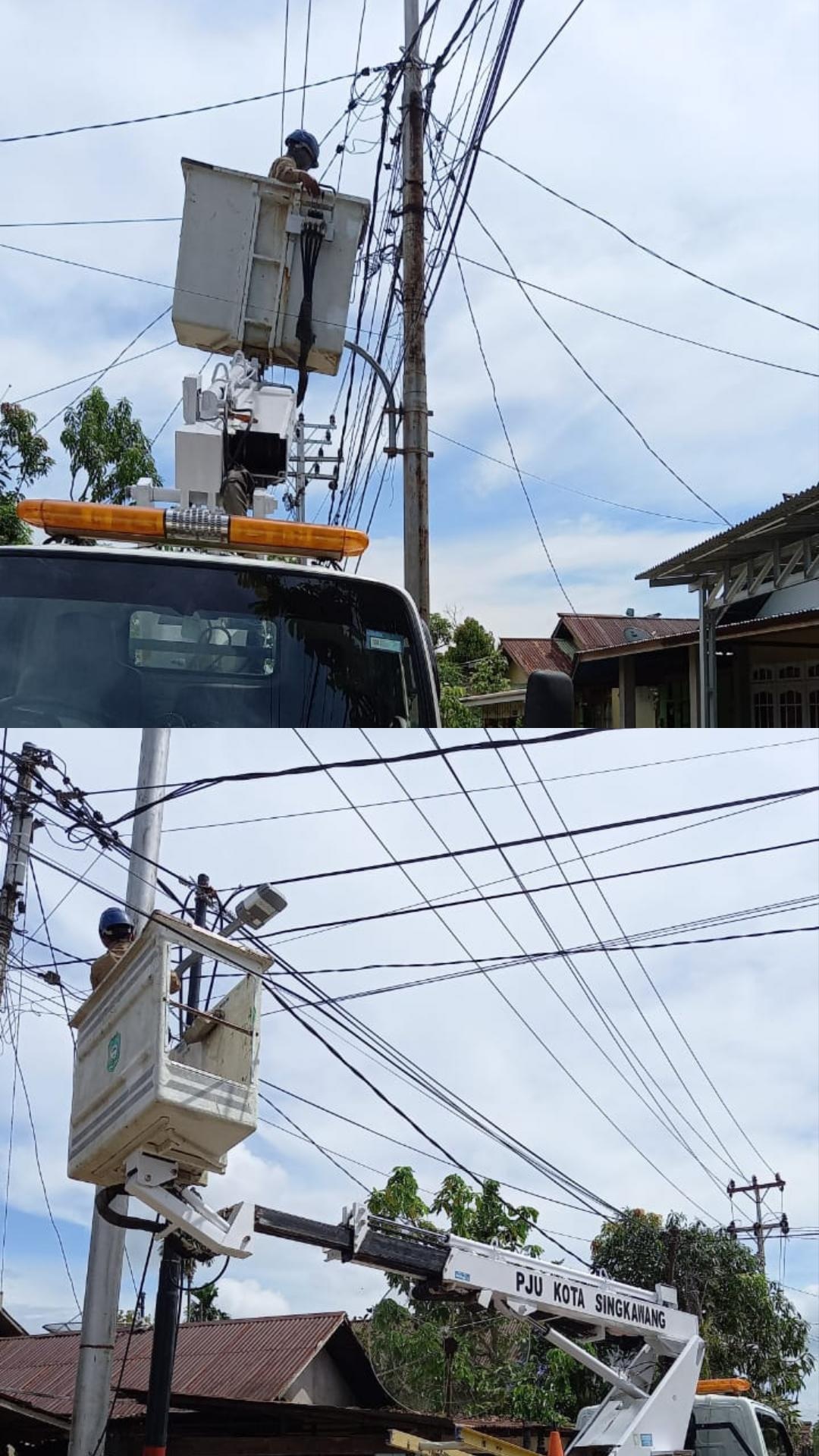 2. Tim PJU Dinas Perhubungan Kota Singkawang melakukan perbaikan jaringan PJU di Jalan Rawasari
