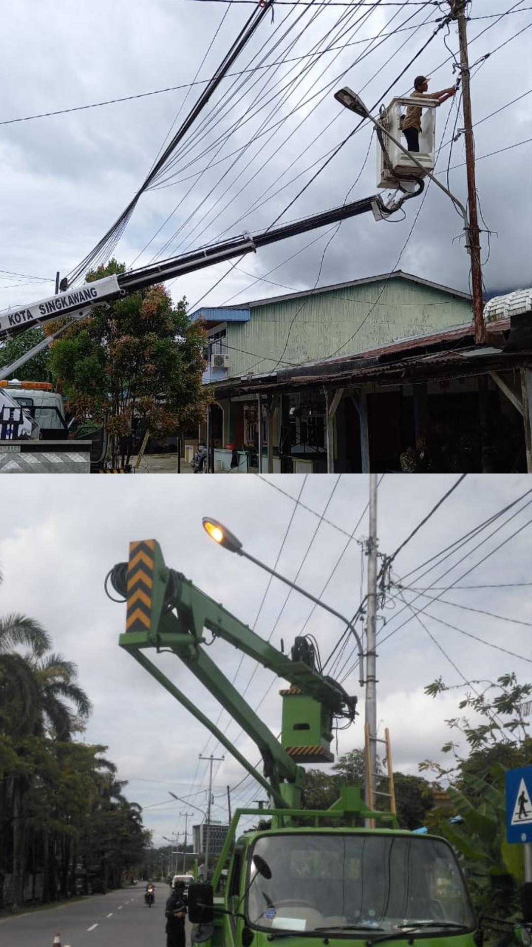 1. Tim PJU Dinas Perhubungan Kota Singkawang melakukan perbaikan jaringan PJU di Jalan Alianyang