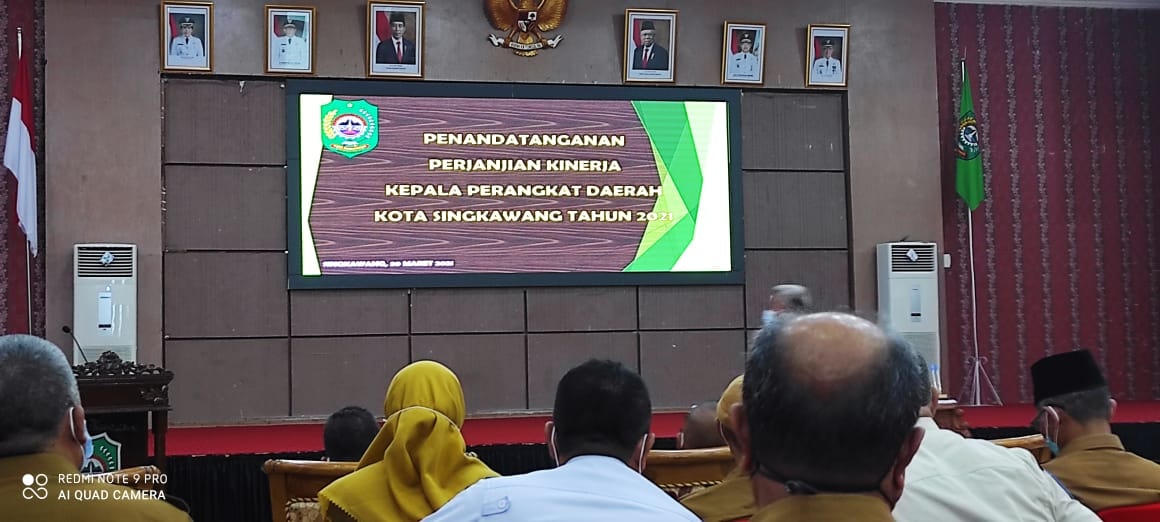 - Menghadiri Kegiatan Penandatanganan Perjanjian Kinerja Kepala Perangkat Daerah Tahun 2021 di Ruang Balairung Kantor Walikota Singkawang