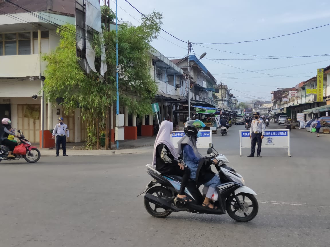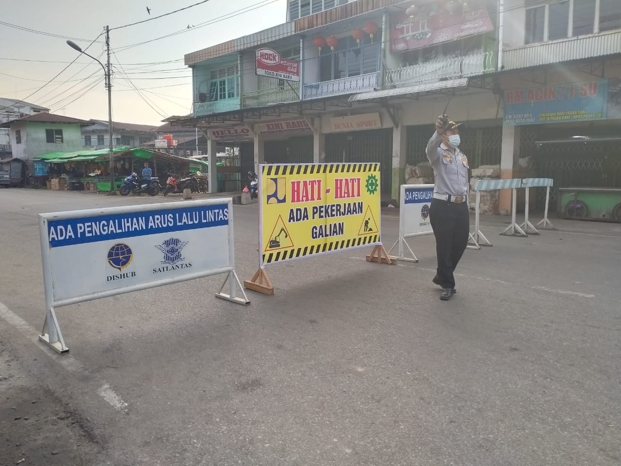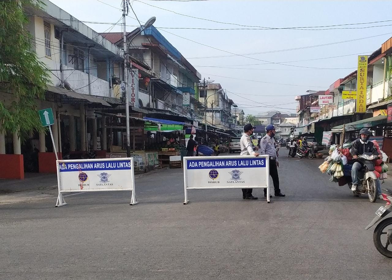 Jumat (09/04/2021), Bidang Lalu Lintas Dinas Perhubungan Kota Singkawang melaksanakan pengalihan arus lalu lintas di Jalan GM Situt (depan pasar beringin) agar arus lalu lintas tetap lancar sehubungan pada kegiatan Normalisasi Sungai Singkawang yang dilaksanakan oleh Dinas Pekerjaan Umum dan Penataan Ruang Kota Singkawang.