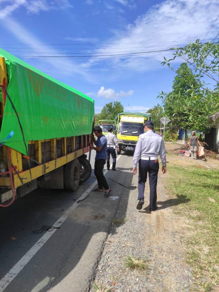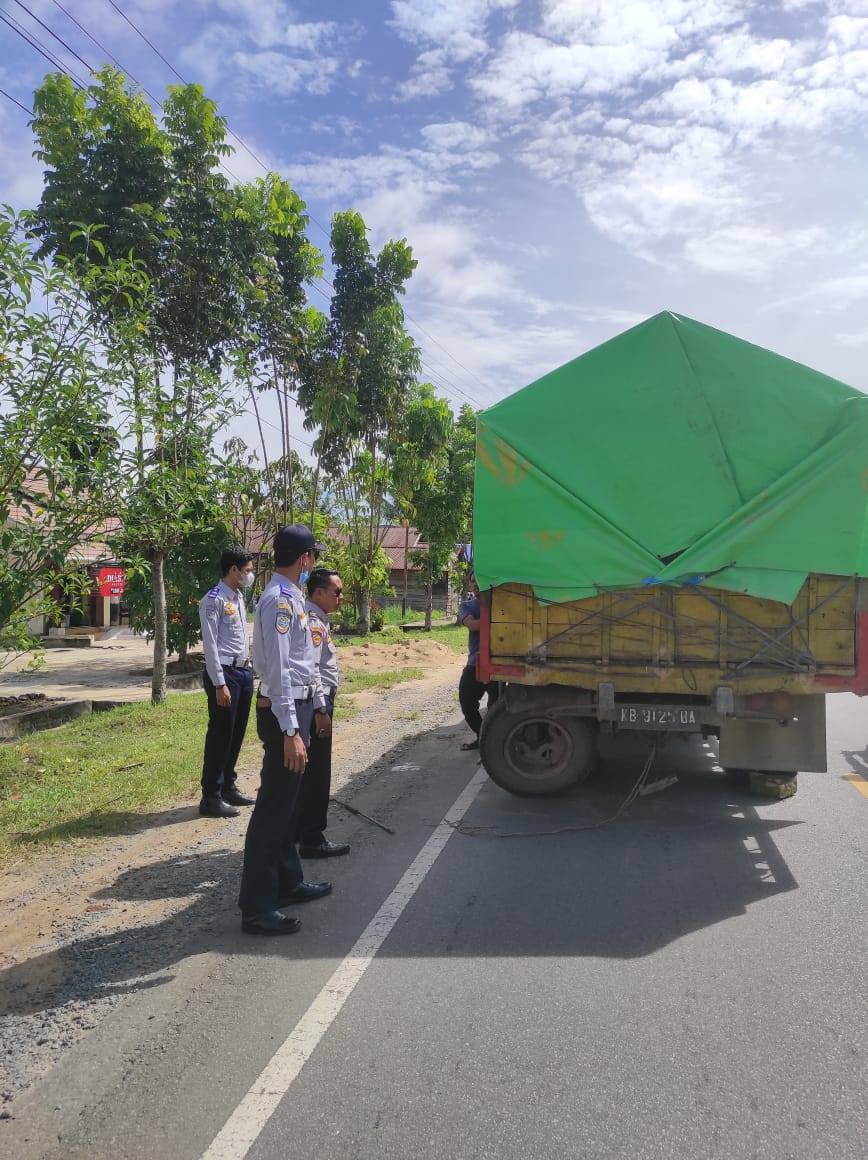 4. Bidang Lalu Lintas Dinas Perhubungan Kota Singkawang melaksanakan pembinaan kendaraan Ltruck yang mengalami pecah ban di badan jalan dan tidak memasang segitiga pengaman di Jalan Ratu Sepudak, Kel. Sungai Rasau Hilir.