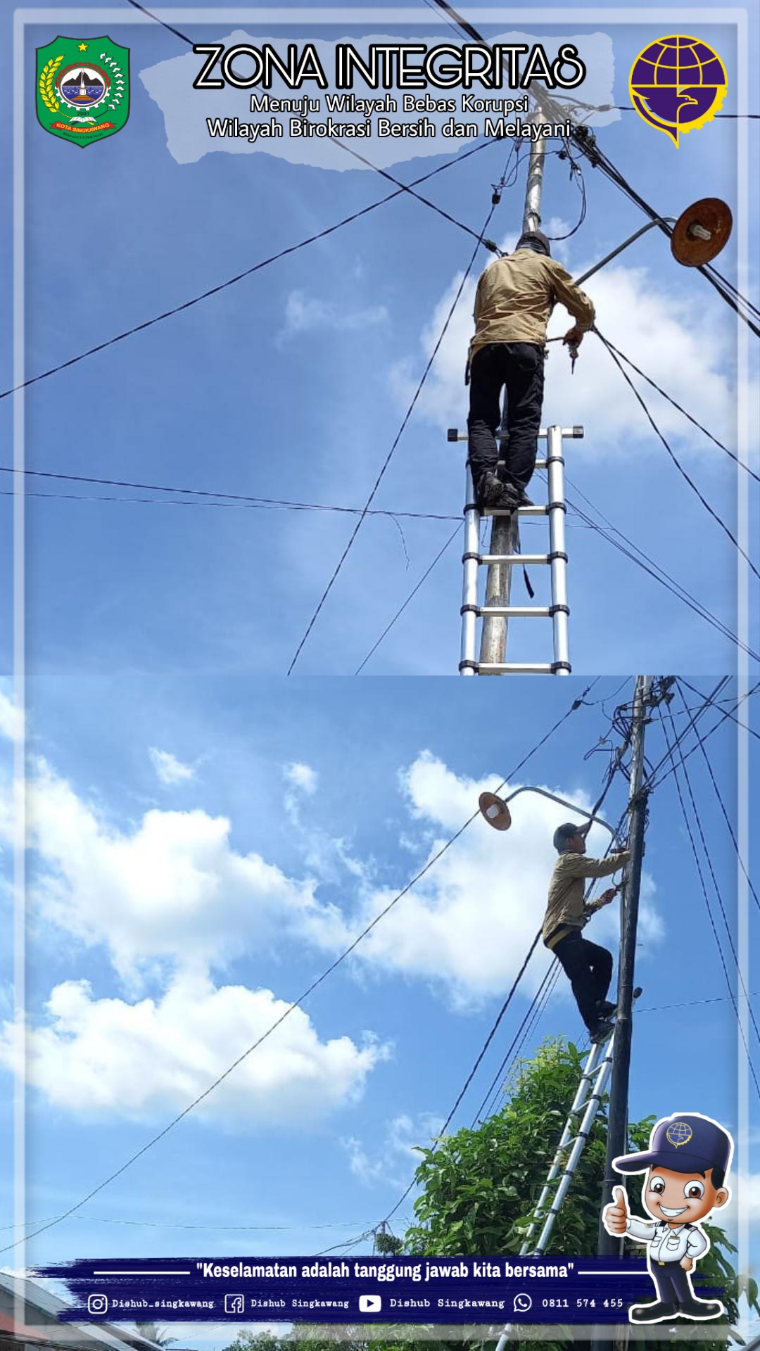 3. Tim PJU Dinas Perhubungan Kota Singkawang melakukan perbaikan jaringan PJU di beberapa titik yang mengalami kerusakan di Kota Singkawang.