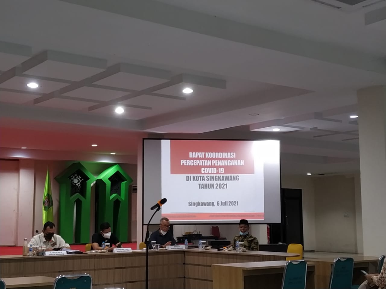 Selasa, 6 Juli 2021 Kepala Dishub Singkawang menghadiri Rapat Koordinasi Percepatan Penanganan COVID-19 di Kota Singkawang (Implementasi Instruksi Menteri Dalam Negeri Nomor 17 Tahun 2021 tentang Perpanjangan Pemberlakuan Pembatasan Kegiatan Masyarakat Berbasis Mikro (PPKM) dan Mengoptimalkan Posko Penanganan COVID-19 di Tingkat Desa dan Kelurahan untuk Pengendalian COVID-19. Kegiatan Rapat Koordinasi dilaksanakan di ruang Basement Kantor Wali Kota Singkawang. Kegiatan Rapat dimulai pukul 19.30 WIB dipimpin langsung oleh Wali Kota dengan moderator Sekretaris Daerah dan dihadiri oleh Wakil Wali Kota, FORKOMINDA Plus dan anggota Satgas Penanganan COVID-19 Kota Singkawang.