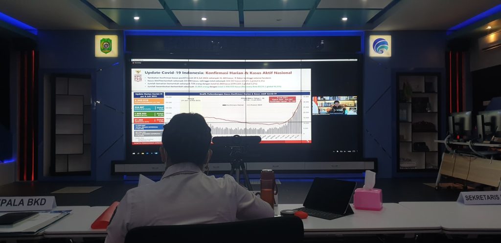 Kepala Dishub Singkawang mendampingi Wali Kota bersama OPD terkait lainnya mengikuti Video Conference Rapat Koordinasi Terbatas di Ruang TCM Room Kantor Wali Kota Singkawang.Kegiatan Video Conference Rapat Koordinasi Terbatas dimulai pukul 14.00 WIB dipimpin langsung oleh Menteri Koordinator Bidang Perekonomian, Bapak Airlangga Hartanto dengan Agenda Rapat yaitu Evaluasi Pelaksanaan Pemberlakuan Pembatasan Kegiatan Masyarakat ( PPKM) Mikro diperketat tang dihadiri oleh 3 Menteri, Panglima TNI, Kapolri, Kepala Badan Nasional Penanggulangan Bencana, 17 Gubernur, 43 Bupati/Wali Kota se Indonesia.