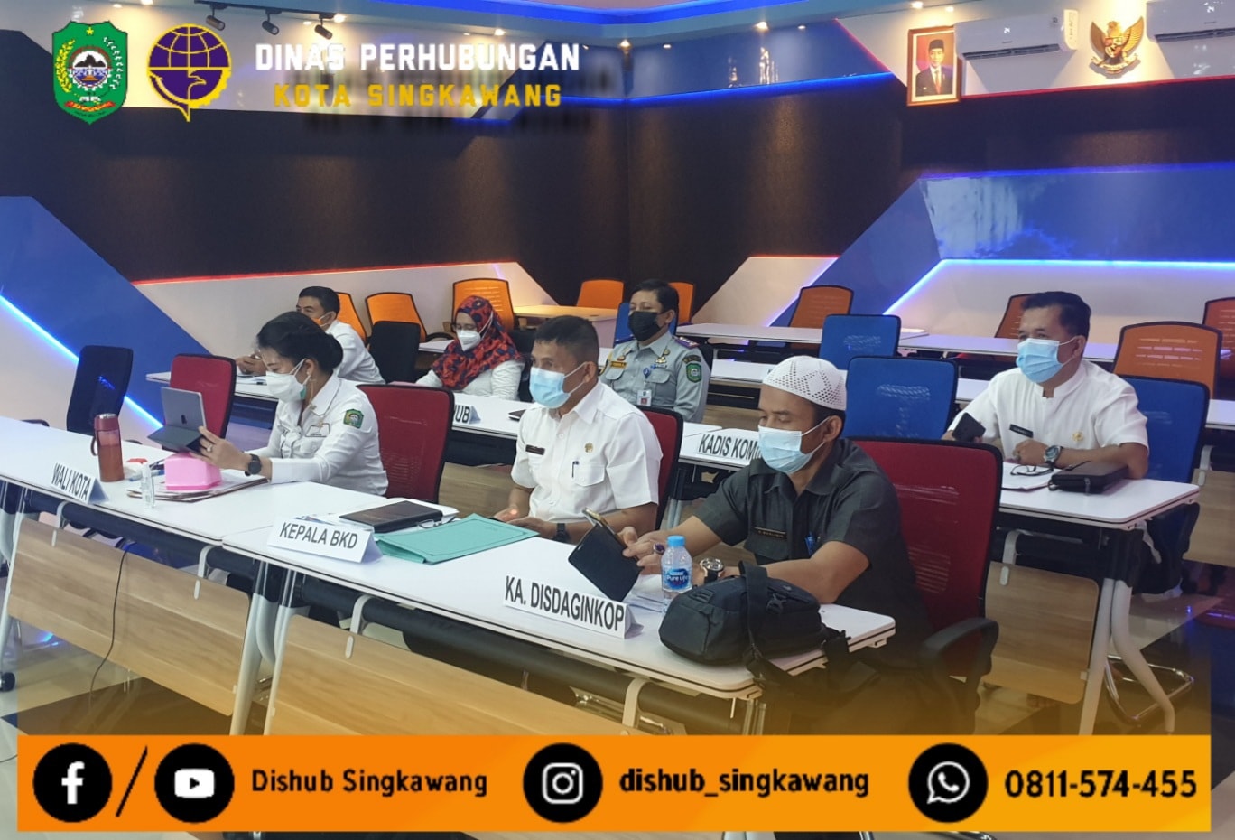 Kepala Dishub Singkawang mendampingi Wali Kota bersama OPD terkait lainnya mengikuti Video Conference Rapat Koordinasi Terbatas di Ruang TCM Room Kantor Wali Kota Singkawang.Kegiatan Video Conference Rapat Koordinasi Terbatas dimulai pukul 14.00 WIB dipimpin langsung oleh Menteri Koordinator Bidang Perekonomian, Bapak Airlangga Hartanto dengan Agenda Rapat yaitu Evaluasi Pelaksanaan Pemberlakuan Pembatasan Kegiatan Masyarakat ( PPKM) Mikro diperketat tang dihadiri oleh 3 Menteri, Panglima TNI, Kapolri, Kepala Badan Nasional Penanggulangan Bencana, 17 Gubernur, 43 Bupati/Wali Kota se Indonesia.