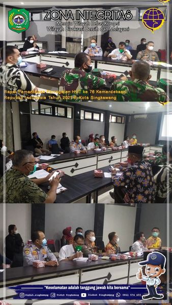 - Dinas Perhubungan Kota Singkawang mengikuti Rapat Pemantapan Peringatan HUT ke 76 Kemerdekaan Republik Indonesia Tahun 2021 di Kota Singkawang pada masa Pandemi Covid-19