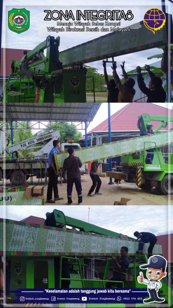 2. Tim PJU Dinas Perhubungan Kota Singkawang melaksanakan kegiatan pembongkaran lampu hias paralon dan pemasangan lampu hias baru di Taman TCM.