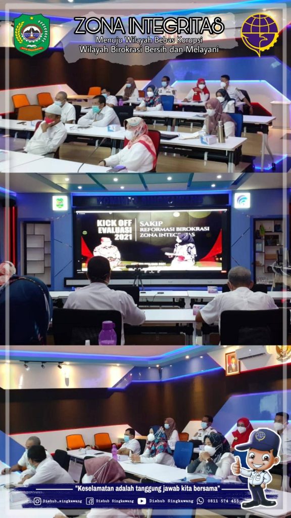1. Dinas Perhubungan Kota Singkawang mengikuti meeting pelaksanaan evaluasi SAKIP, RB, dan ZI tahun 2021 di Telematic Control Management Room Kantor Wali Kota Singkawang.
