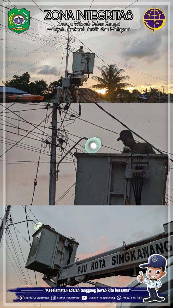 5. Tim PJU Dinas Perhubungan Kota Singkawang melakukan perbaikan jaringan PJU di Jalan Meranti, Gang Keluarga Perum, Gang Pinang Merah Bukit Batu
