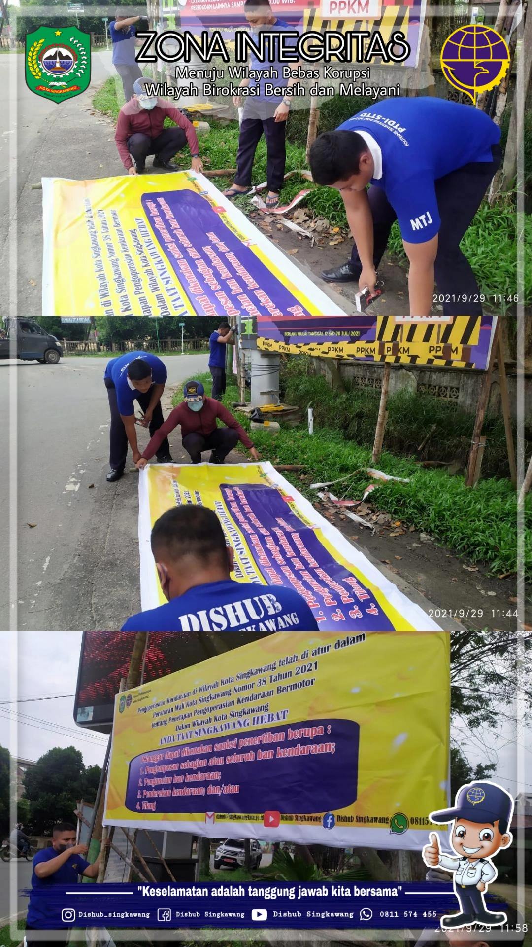 2. Bidang Lalu Lintas Dinas Perhubungan Kota Singkawang melakukan pemasangan banner di sekitar jalan Kota Singkawang terkait informasi penegakan Perwako No 38 Tahun 2021