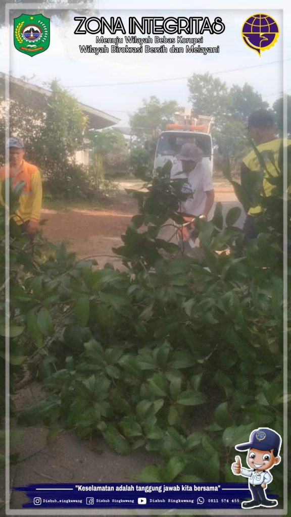 2. Tim PJU Dinas Perhubungan Kota Singkawang melakukan pemangkasan dan penebangan pohon yang menghalangi penerangan jalan umum di Jalan Burhani