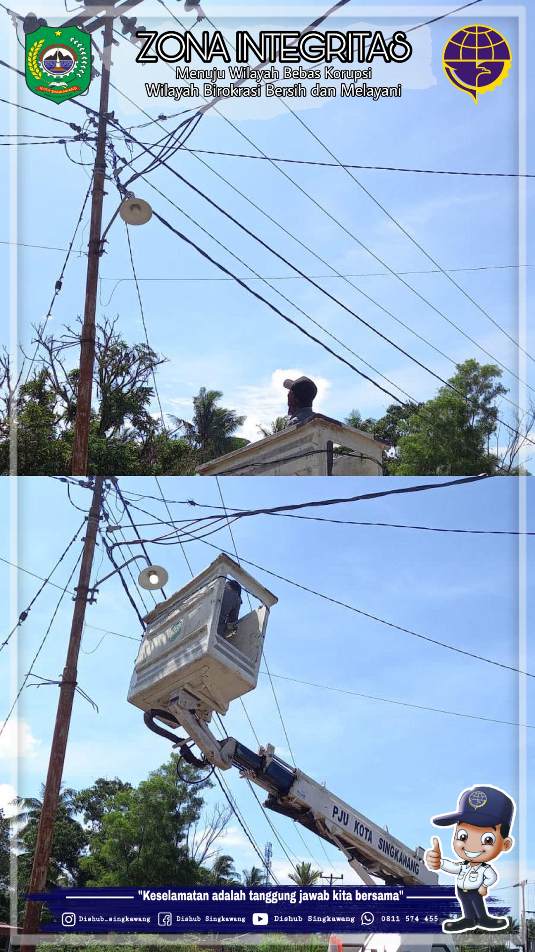 1. Tim PJU Dinas Perhubungan Kota Singkawang melaksanakan perbaikan jaringan PJU di Jalan Marhaban dalam