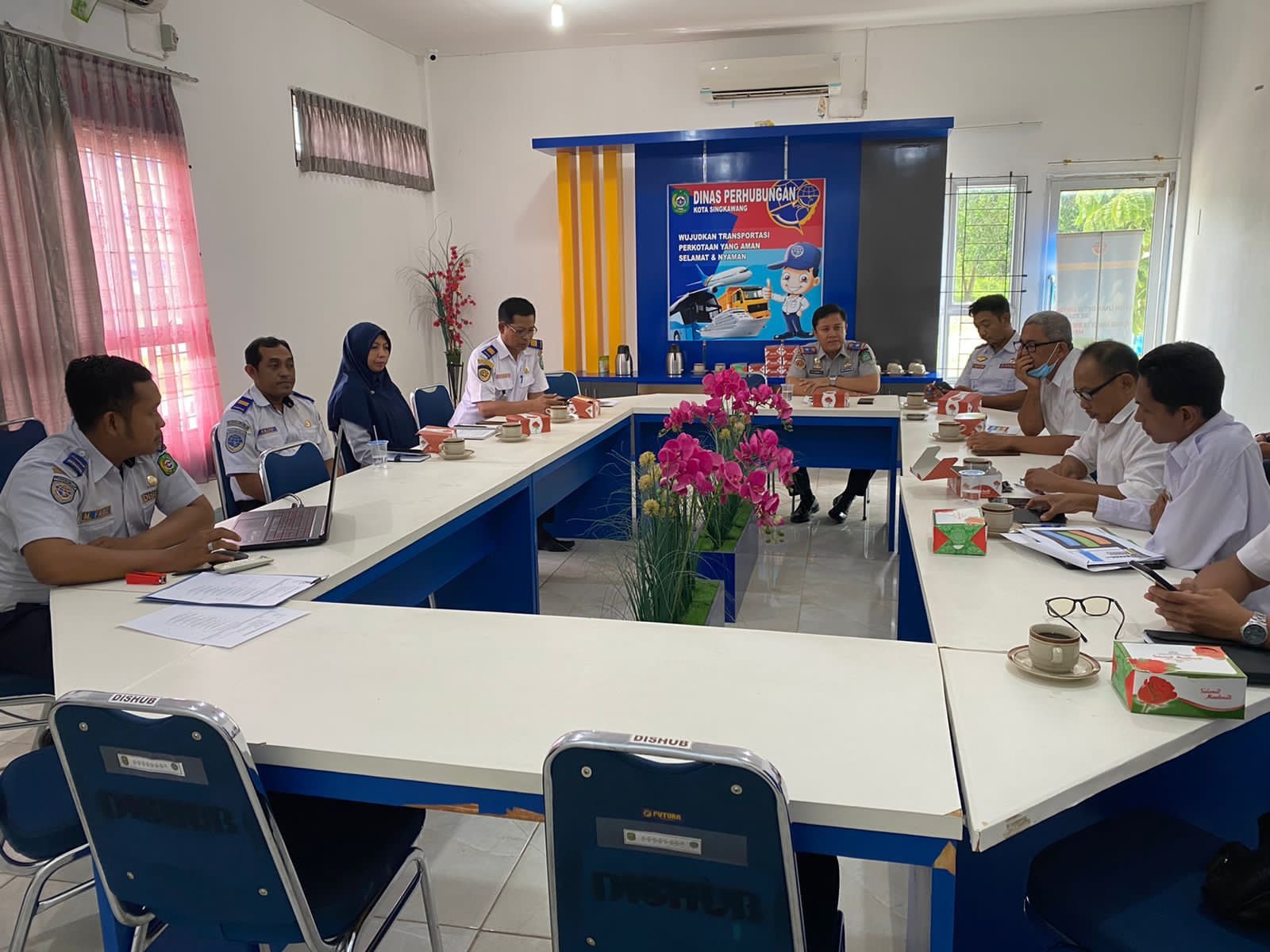 - Memimpin Rapat Kegiatan Rapat Pembahasan Mekanisme Hibah Tanah Terminal Tipe A Antar Lintas Batas Negara (ALBN) Kota Singkawang di Aula Dinas Perhubungan Kota Singkawang yang dihadiri Inspektorat, Badan Keuangan Daerah dan Kepala Bagian Hukum Setda dan pejabat terkait di lingkungan Dishub Singkawang.