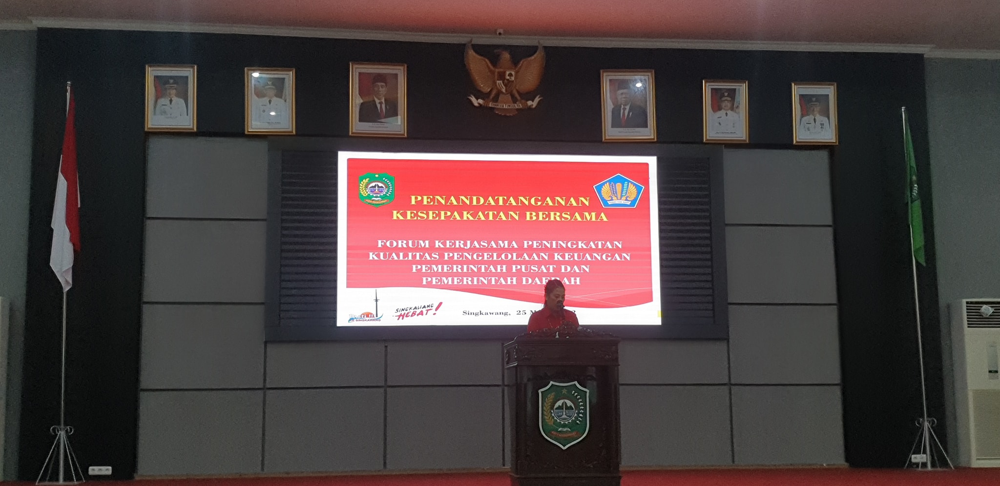 - Menghadiri Penandatanganan Kesepakatan Bersama (MoU) Pengelolaan Keuangan Pusat Daerah antara Kakanwil Ditjen Perbendaharaan Prov. Kalbar, Bapak Imik Eko Putro dan Wali Kota Singkawang, Ibu Tjhai Chui Mie di ruang Balairung Kantor Wali Kota Singkawang.